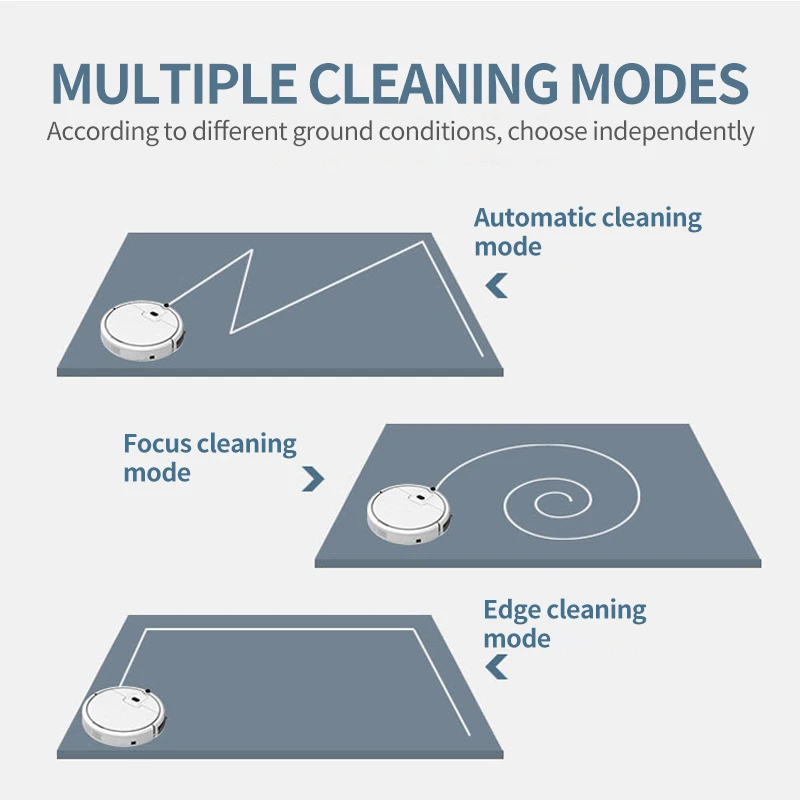 Intelligent triple modes: Triple modes can be selected according to actual cleaning place. It includes clean up freely, edge cleaning and bow sweep.