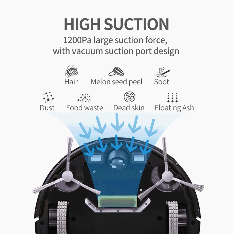 anit-fall to protect the robot as well as your furniture. Every home has one or two areas that never stay clean. Be it, crumbs under the dinner table or the back door where the dog tracks in dirt. That’s why your cleaning robot comes with small body. It lets you clean specific areas in your home whenever you want. Just click one button.