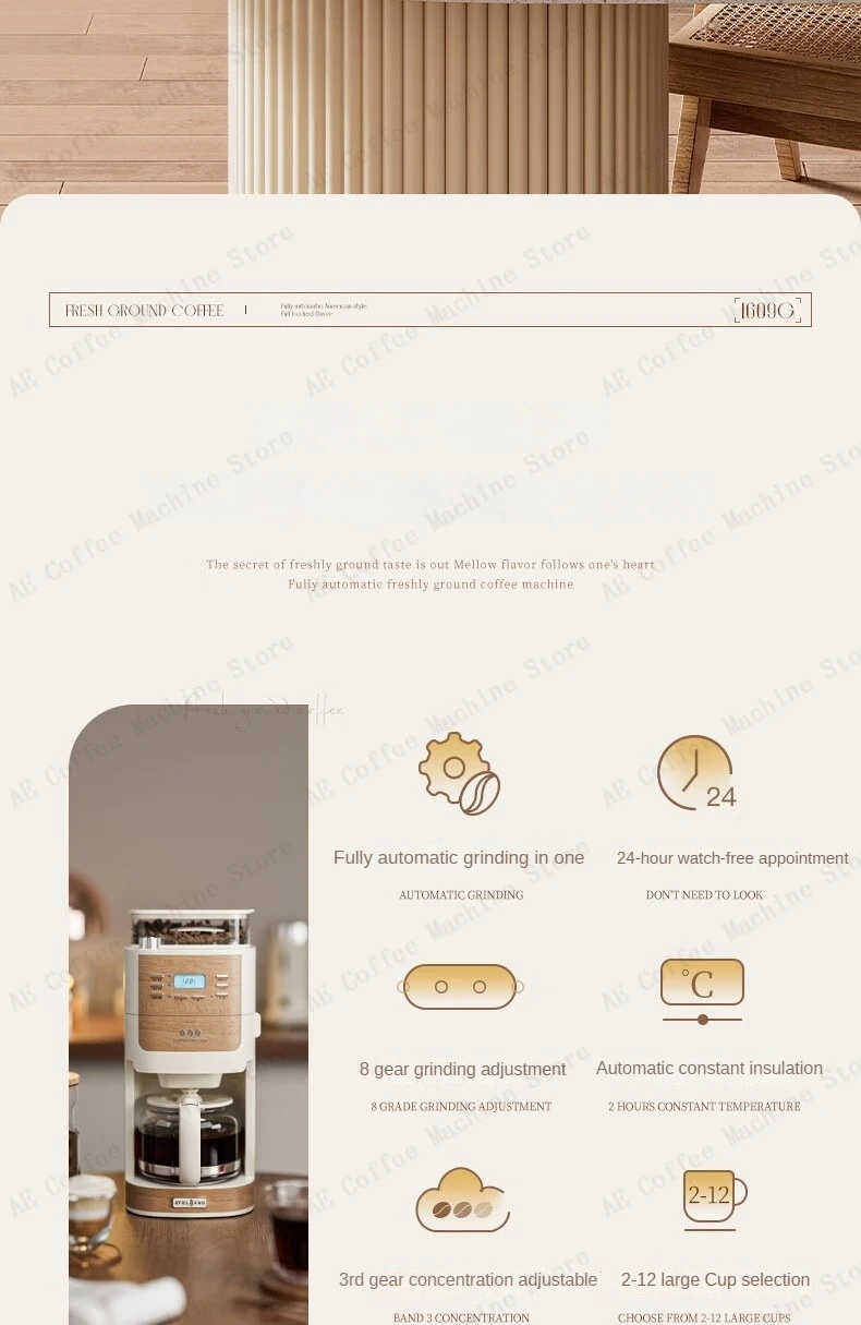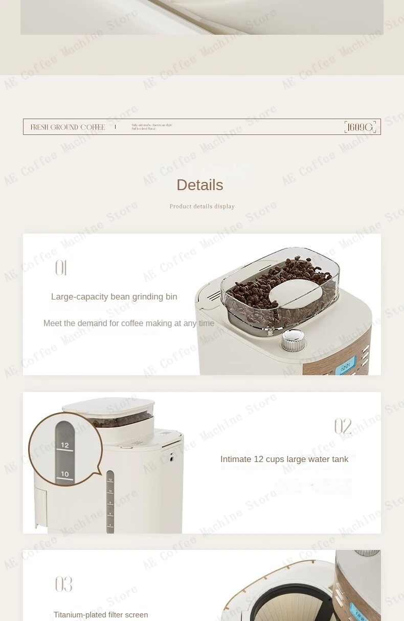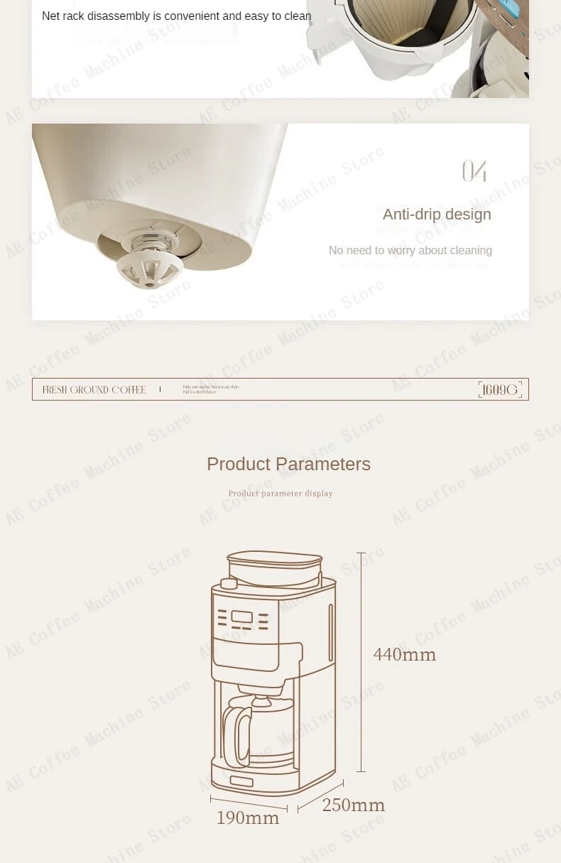 Integrated Bean Grinding American Coffee Machine Small Household Drip Coffee Machine Portable Coffee Machine Timer Function
